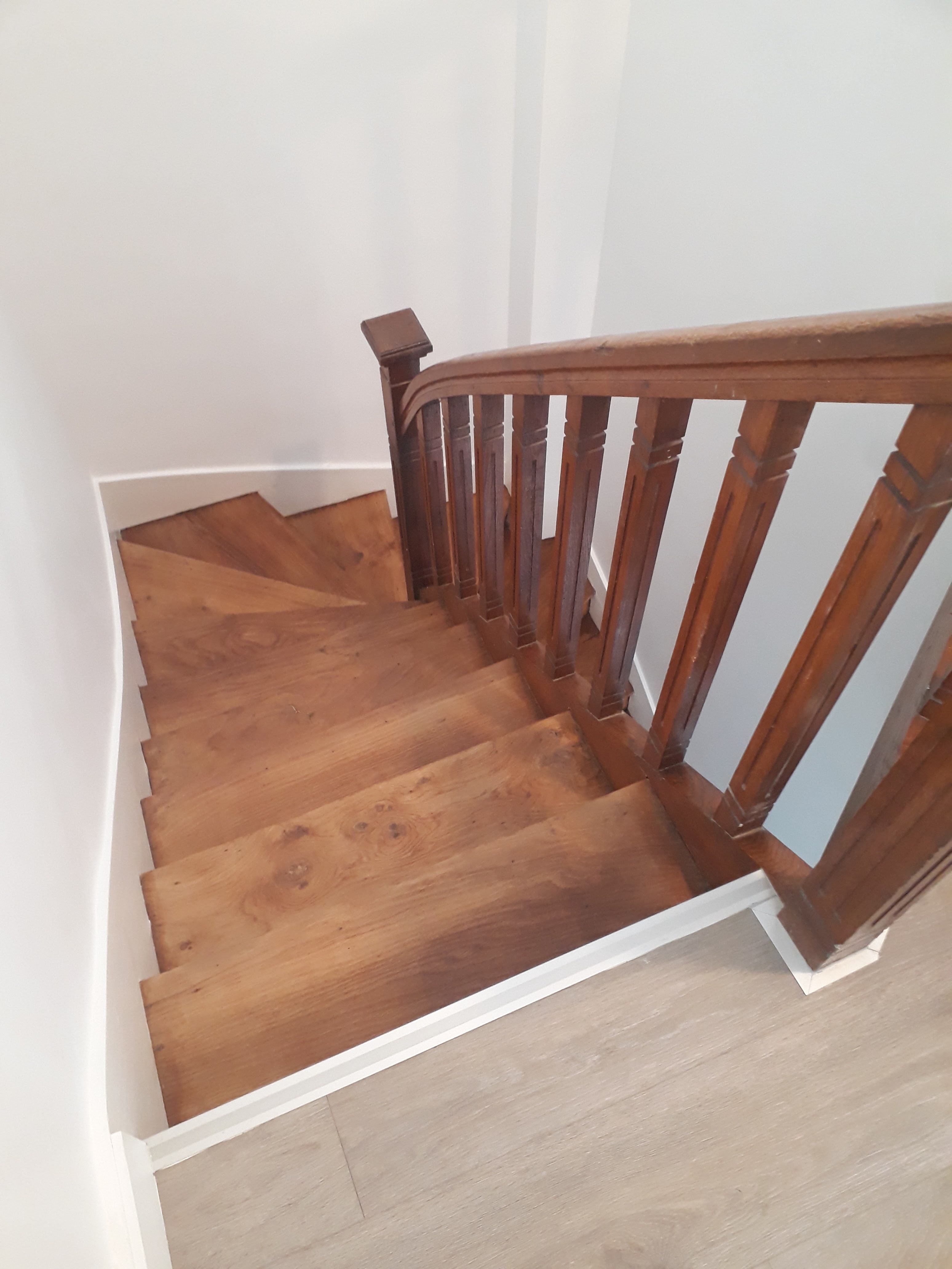 "Nous avons fait appel à GROUPEIMER pour poncer et vitrifier nos escaliers qui étaient recouverts d'une moquette et/ou d'un tapis central. Nous avons complété avec la peinture de la rambarde par un artisan peintre qu'il nous avait conseillé, Vincent FRANGER. Nous sommes très contents du résultat, le bois a retrouvé une jolie couleur miel qui fait ressortir les veinures et les nœuds. Travaux réalisés dans les temps, planning respecté !"